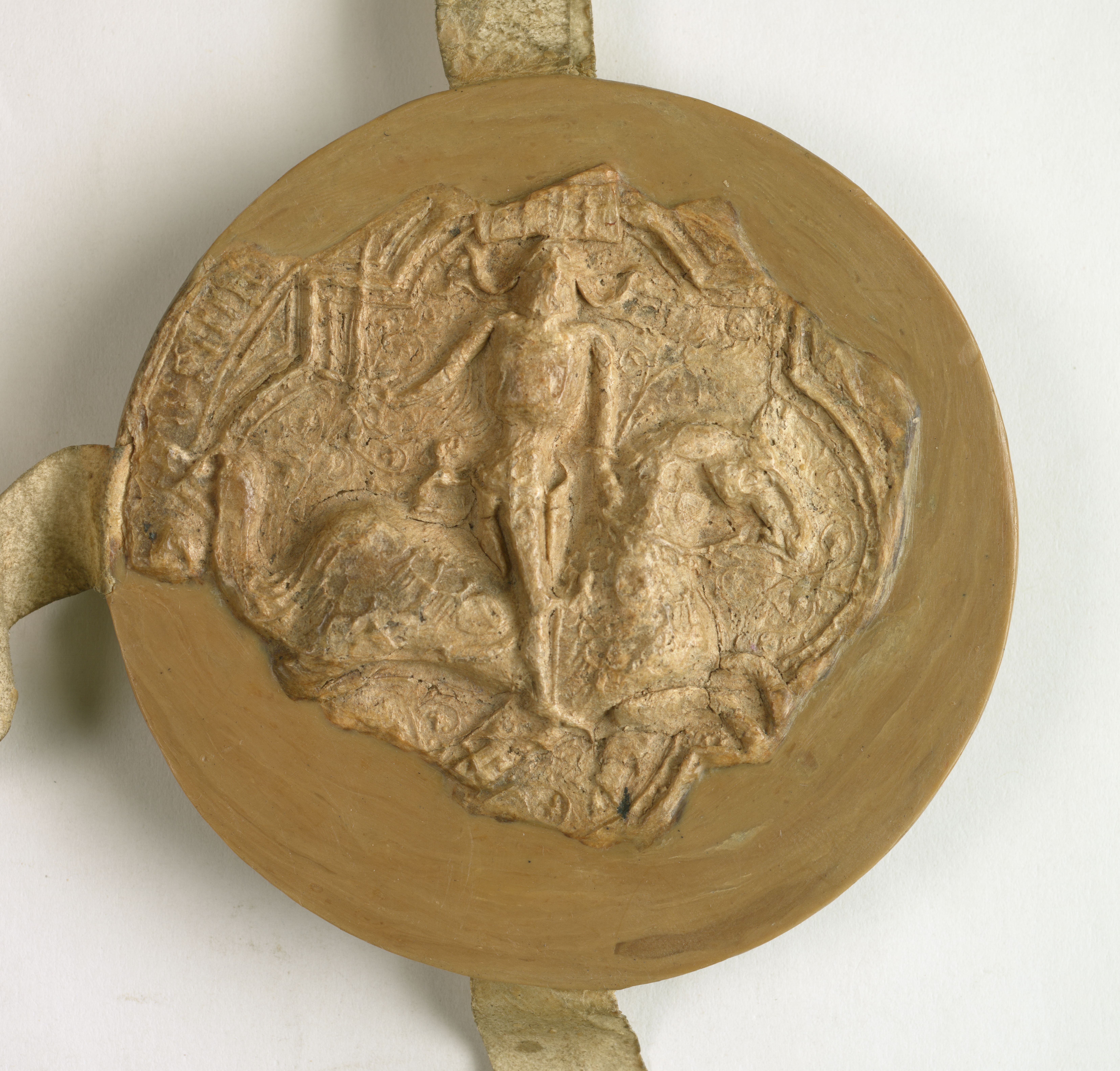 Władysław Opolczyk, książę opolski, wieluński, pieczęć konna II. Odcisk z Archiwum Głównego Akt Dawnych w Warszawie z 1392 r.
