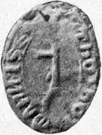 Pieczęć podługowata, wyobraża niby krzyż bez lewego ramienia, u dołu rozdarty. Napis otokowy uszkodzony: