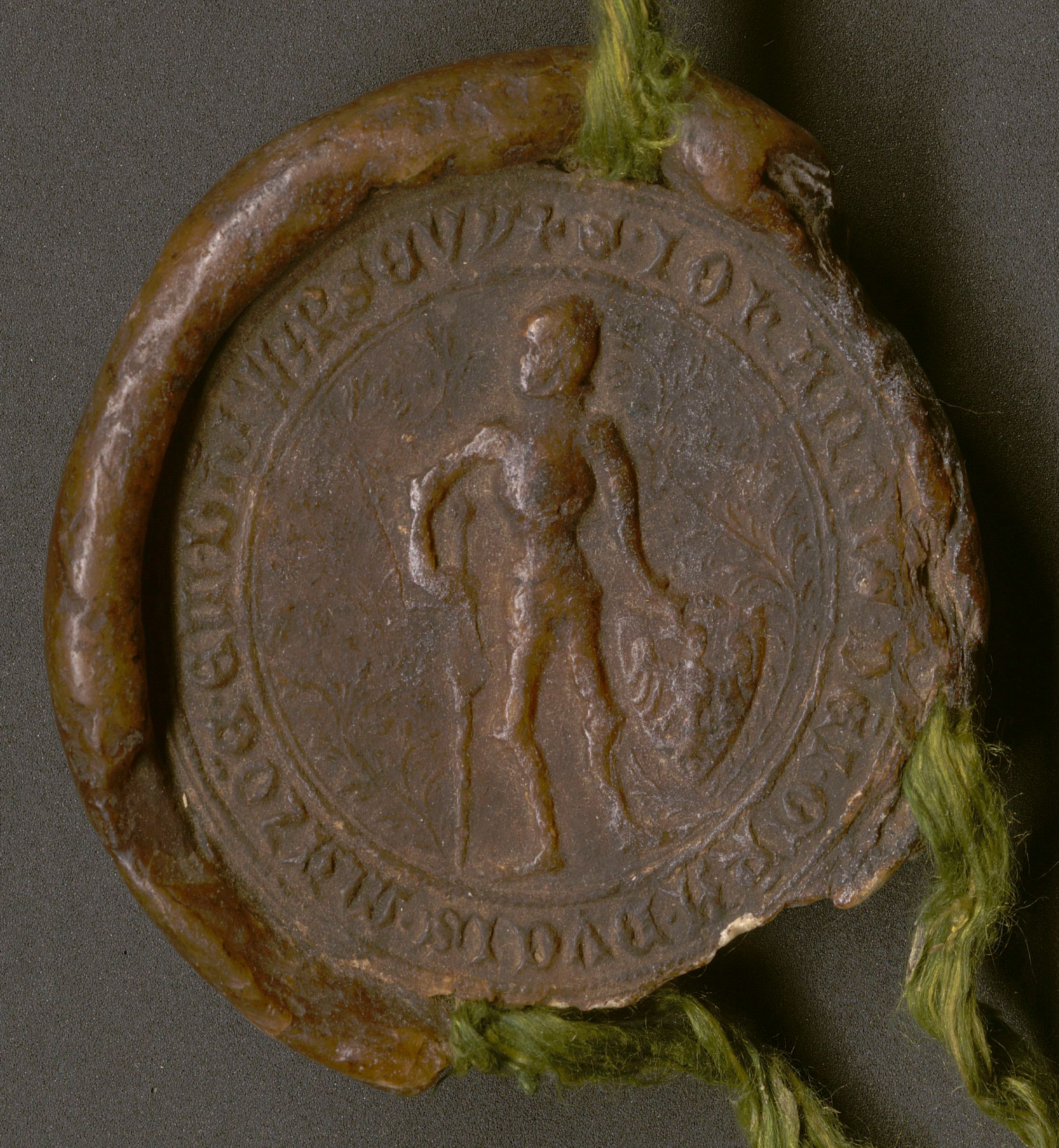 Janusz I Stary, książę Mazowsza i pan Warszawy, pieczęć piesza II. Odcisk z Archiwum Głównego Akt Dawnych w Warszawie z 1382 r. (1)