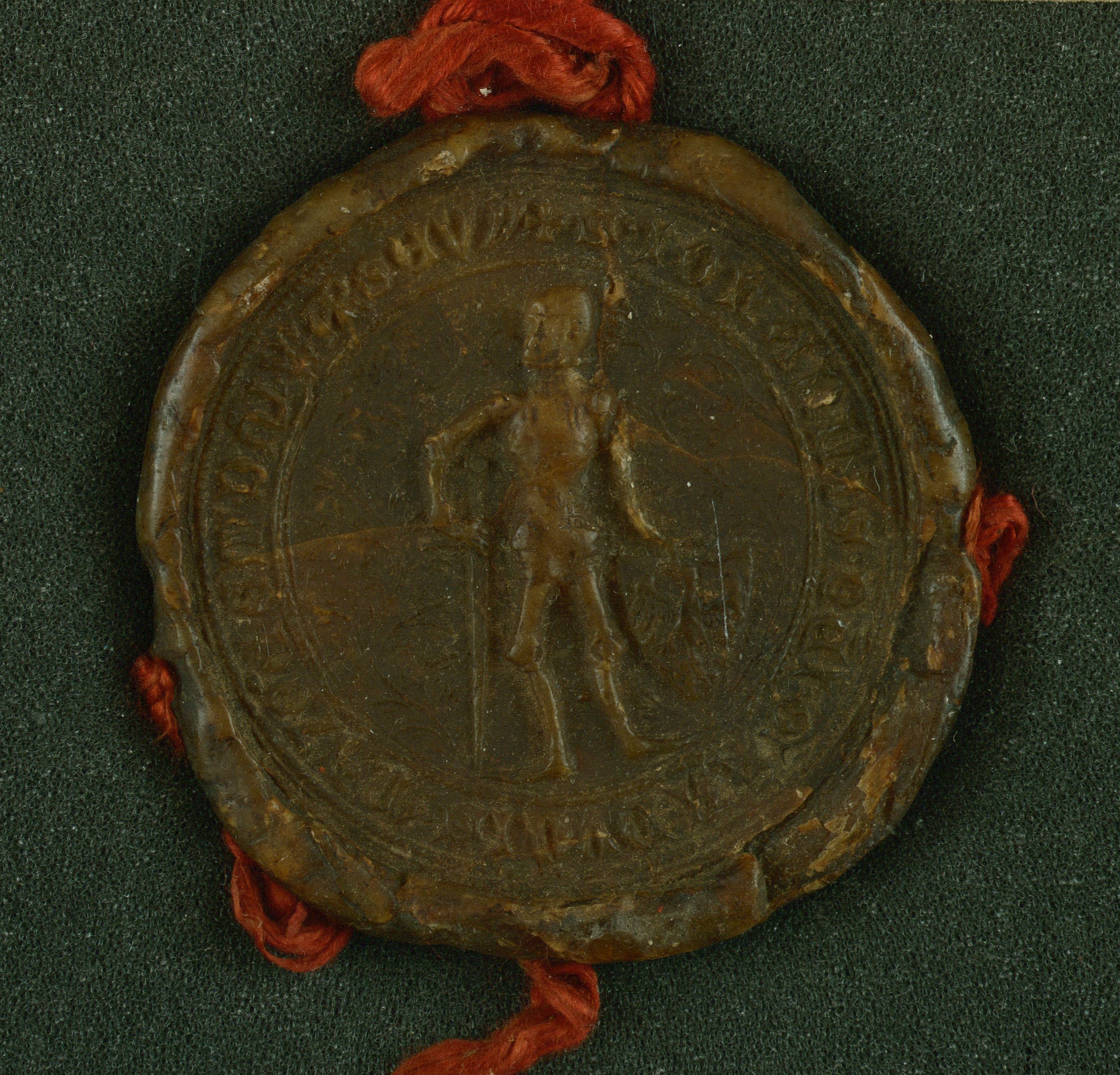 Janusz I Stary, książę Mazowsza i pan Warszawy, pieczęć piesza II. Odcisk z Archiwum Głównego Akt Dawnych w Warszawie z 1397 r.