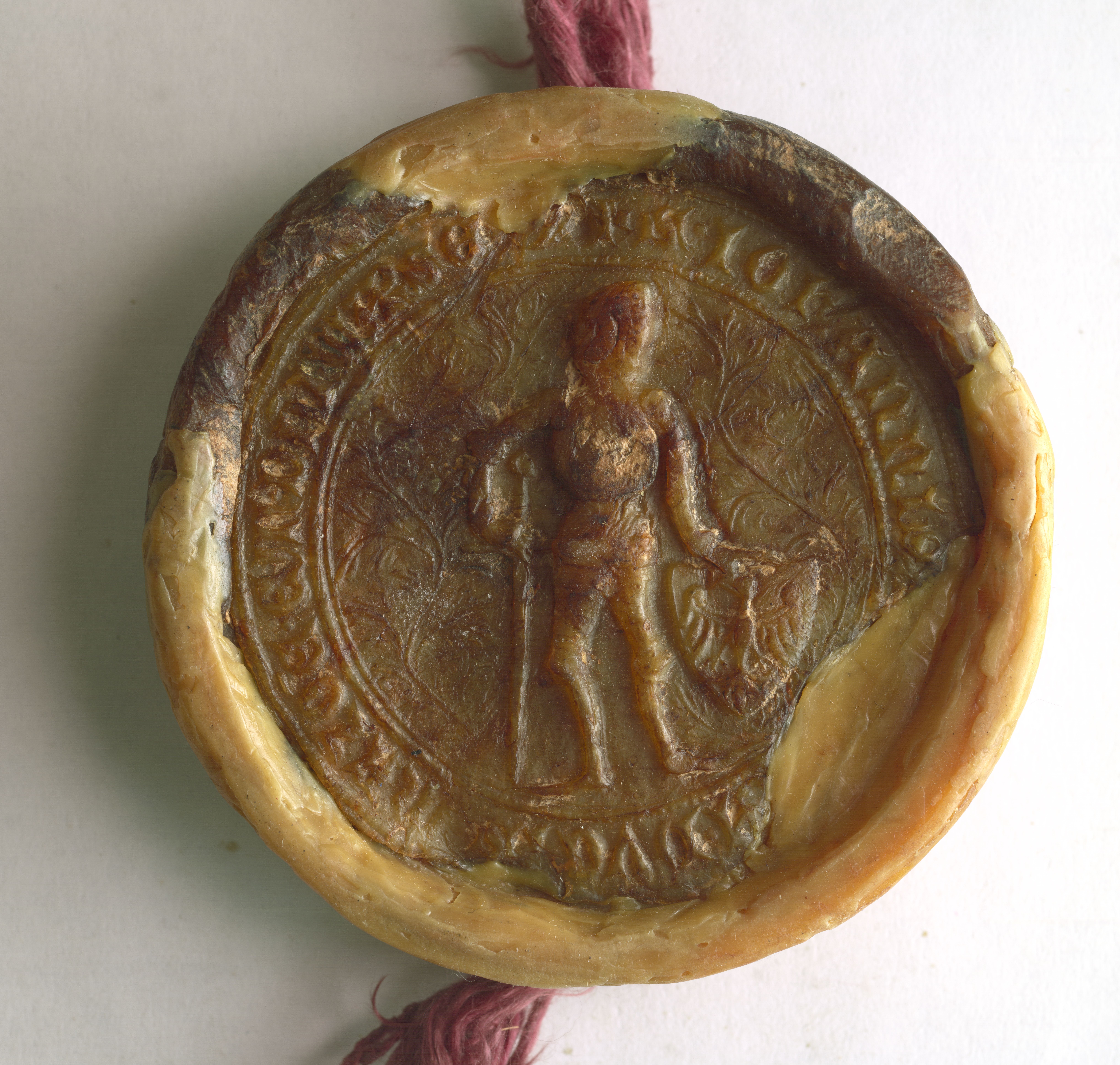 Janusz I Stary, książę Mazowsza i pan Warszawy, pieczęć piesza II. Odcisk z Archiwum Głównego Akt Dawnych w Warszawie z 1418 r. (1)
