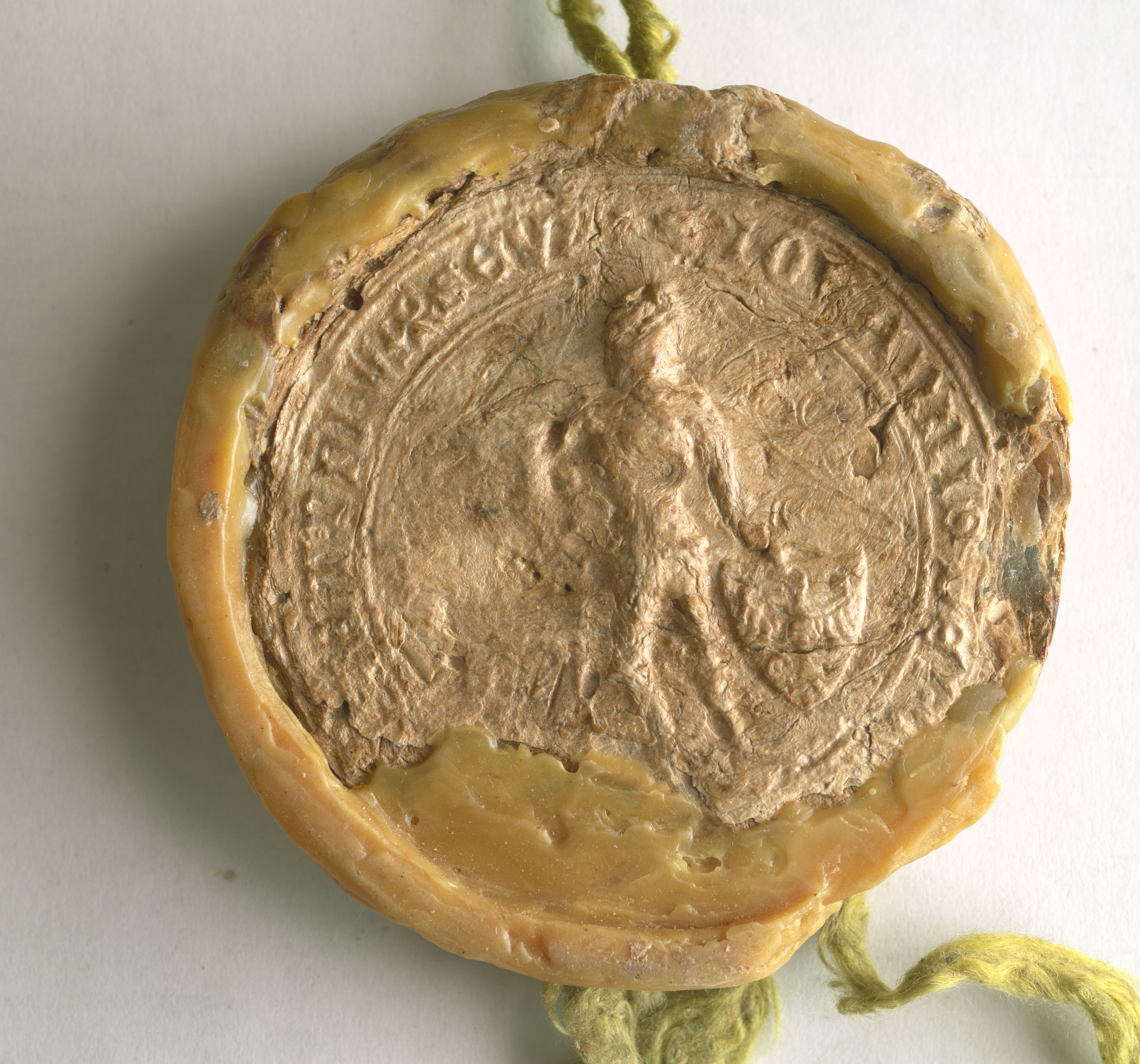 Janusz I Stary, książę Mazowsza i pan Warszawy, pieczęć piesza II. Odcisk z Archiwum Głównego Akt Dawnych w Warszawie z 1416 r. (2)