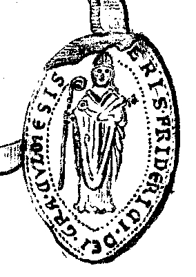 Fryderyk von Hausen, biskup chełmiński, pieczęć piesza. Odrys Kazimierza Stronczyńskiego z 1839 r.