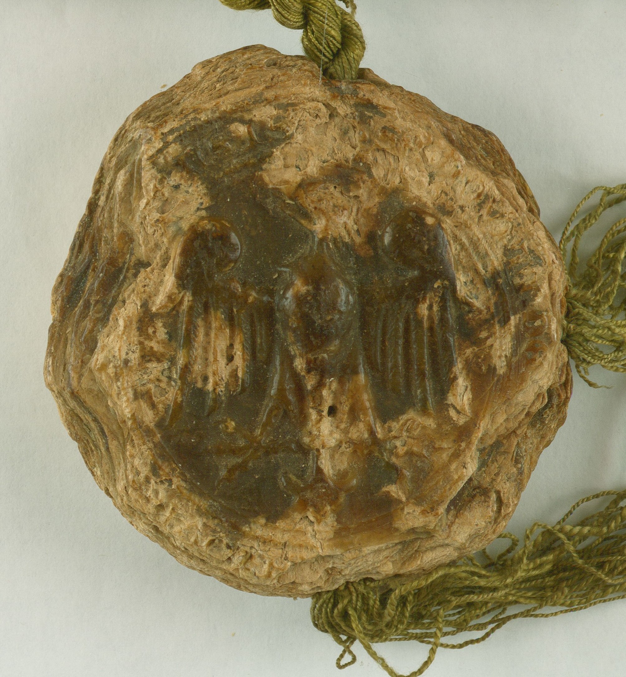 Siemowit III Trojdenowic, książę mazowiecki, pan czerski, pieczęć herbowa II. Odcisk z Archiwum Głównego Akt Dawnych w Warszawie z 1378 r.