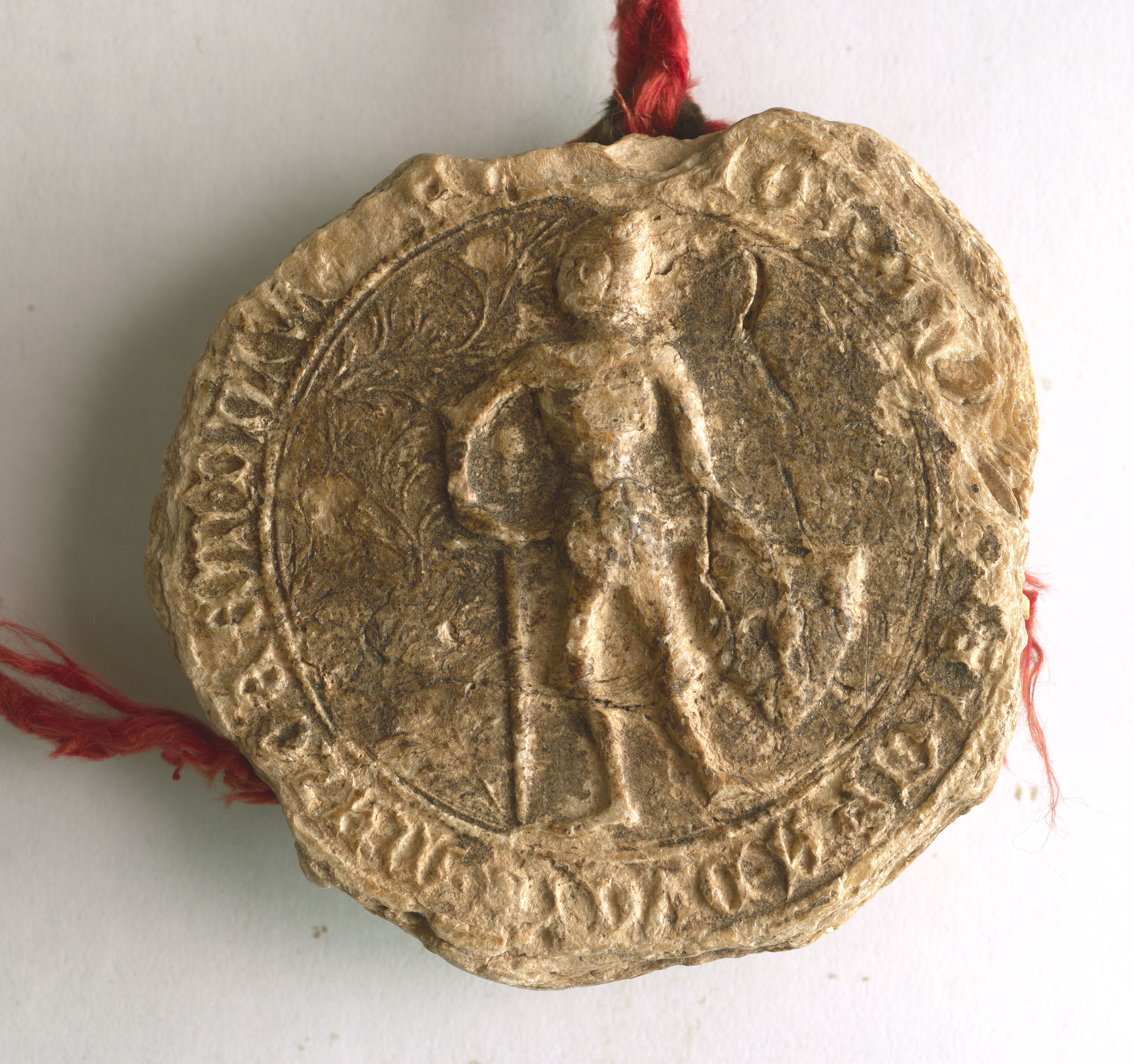 Janusz I Stary, książę Mazowsza i pan Warszawy, pieczęć piesza II. Odcisk z Archiwum Głównego Akt Dawnych w Warszawie z 1416 r. (1)