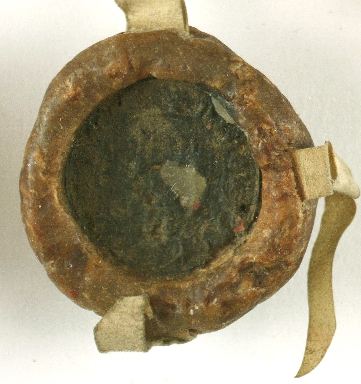 Mikołaj Cztan ze Strzelec [h. Grzymała], rycerz, pieczęć herbowa I. Odcisk z Archiwum Głównego Akt Dawnych w Warszawie z 1388 r.