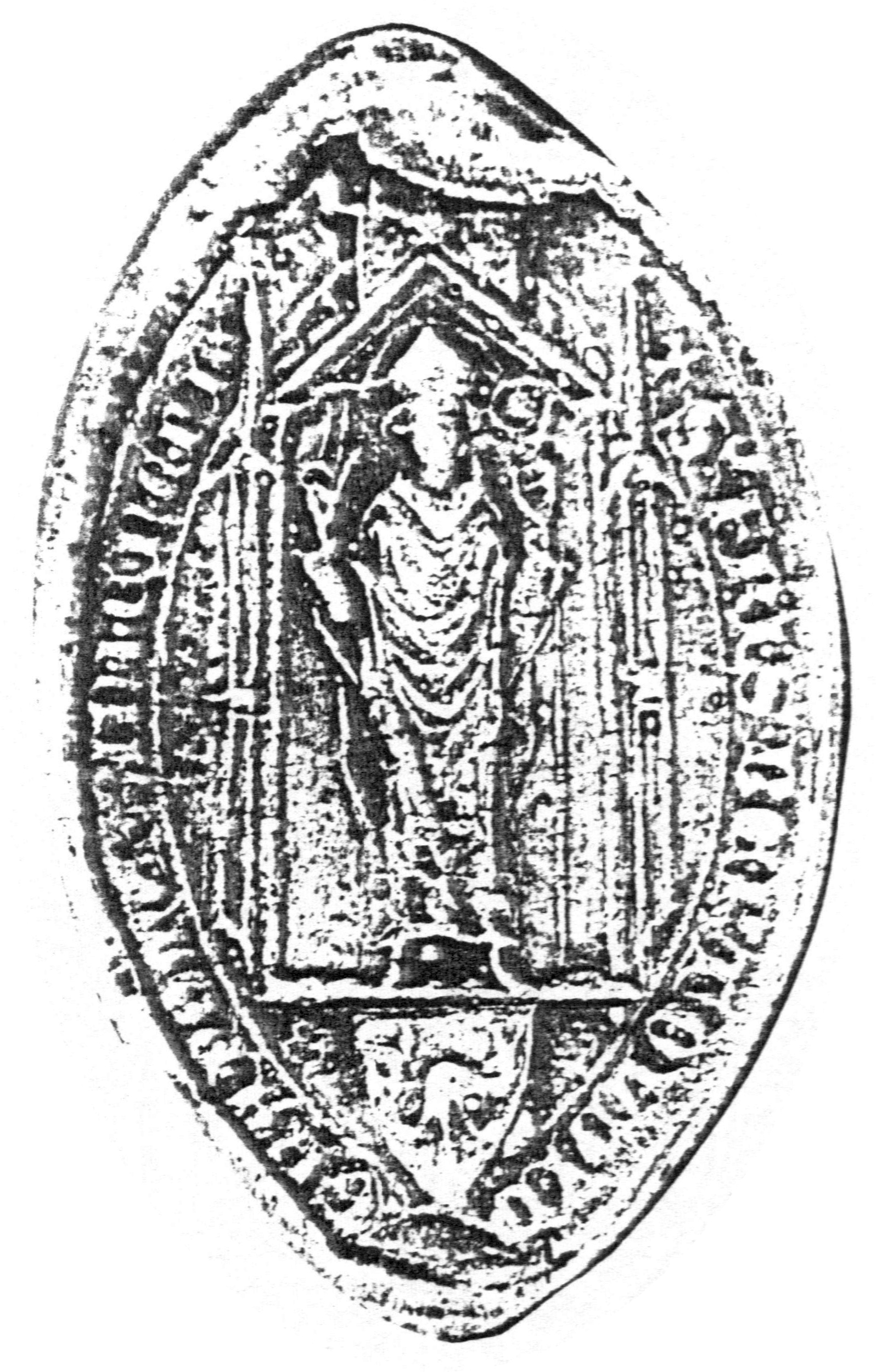 Bertold z Prabut, biskup pomezański, pieczęć piesza. Ilustracja z katalogu Hansa-Georga Boehma z 1993 r.