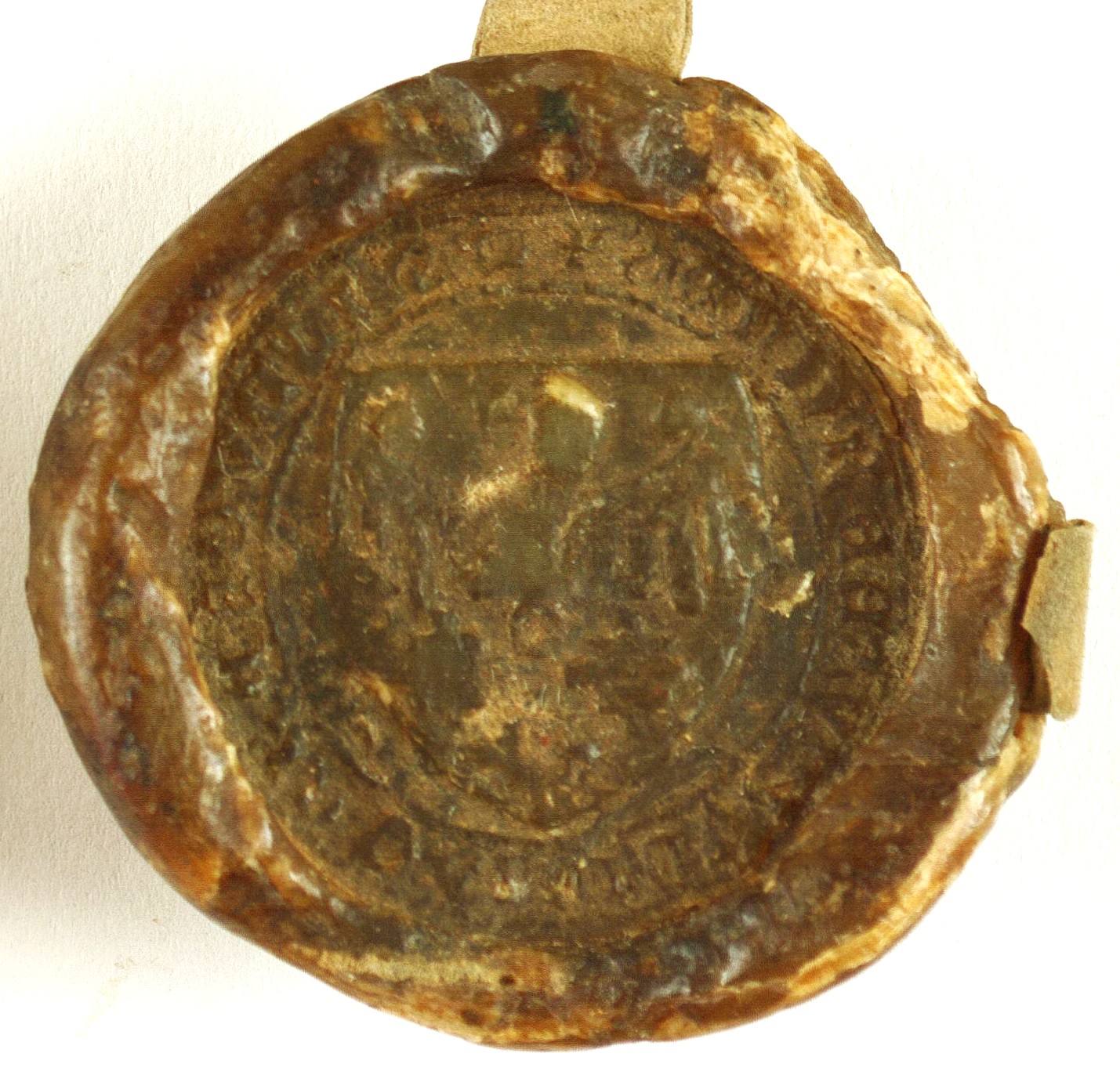 Andrzej z Wawrowic, podsędek ziemski krakowski, pieczęć herbowa III. Odcisk z Archiwum Głównego Akt Dawnych w Warszawie z 1381 r.