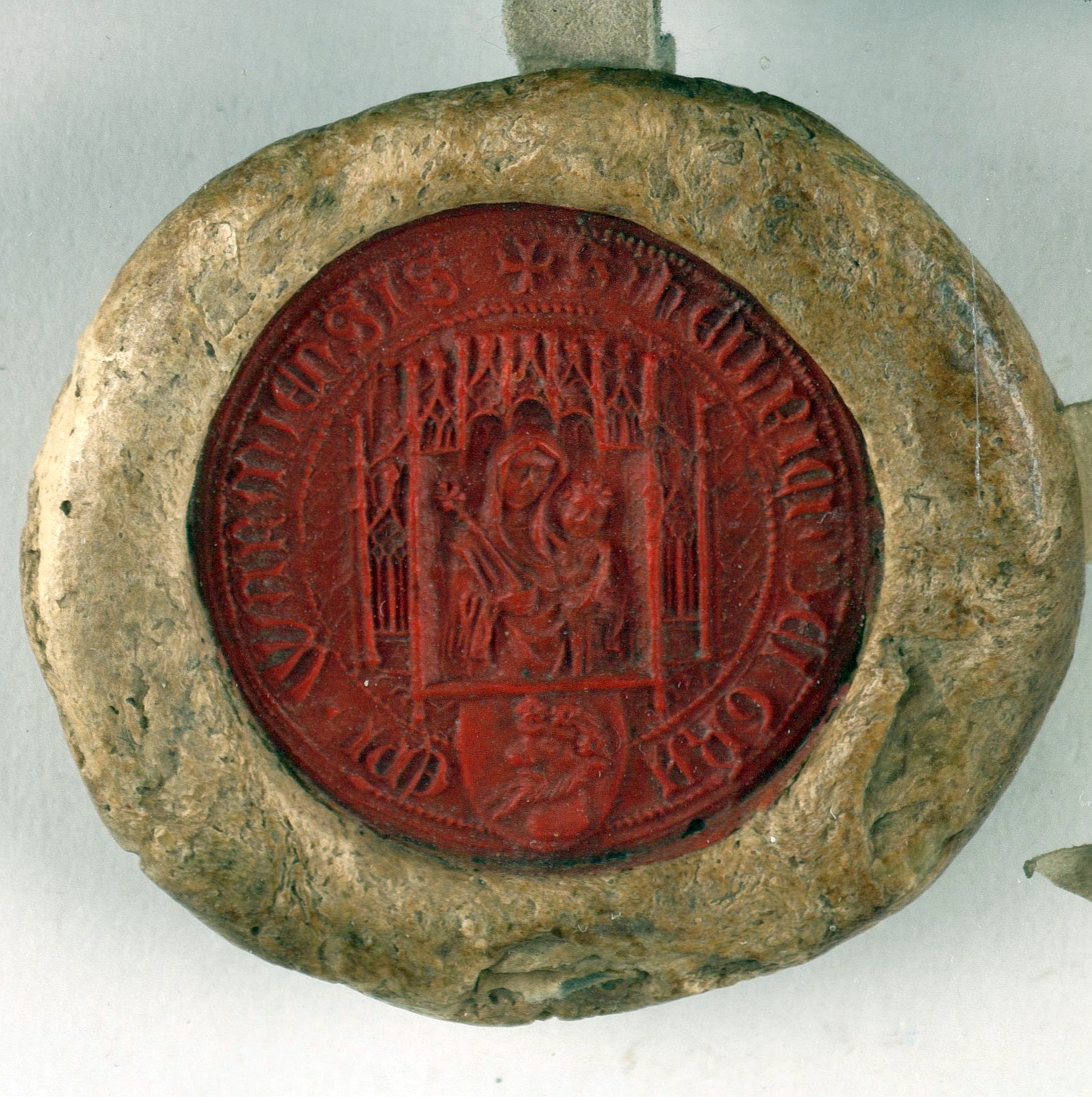 Henryk Vogelsang, biskup warmiński, pieczęć maryjna. Odcisk z Archiwum Głównego Akt Dawnych z 1410 r.