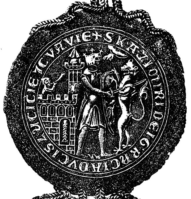 Najpospolitszą jest pieczęć nieco mniejsza od poprzedniej, planem jednak rysunkowym bardzo do niej podobna, i tem się tylko różniąca, że na murze miejskim przedstawia nie chorągiew, ale trębacza, na tarczy książęcej orła, a nad głową książęcą rękę Opatrzności wychodzącą z obłoków; w rysunku muru, kształcie niektórych liter napisowych, i samej ortografii napisu, także pewne w niej zachodzą odmienności. W bramie muru np. widać kolumnę której nie ma na poprzedniej pieczęci. Liczne takiej pieczęci okazy na wosku zwykłym wytłaczane, i na czerwonych jedwabnych sznurkach wiszące, widziałem przy dyplomach pomiędzy latami 1250-1257.
