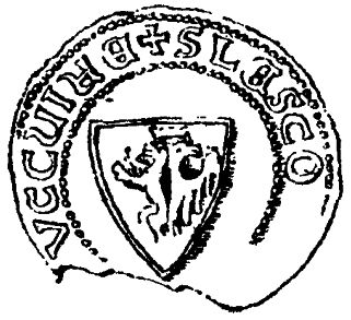 Pieczęć mała z herbem na tarczy. Miałem w ręku tylko uszkodzony takiej pieczęci okaz bez dyplomatu, i żadnego śladu sznurków; wyciśnięta na wosku zwyczajnym.