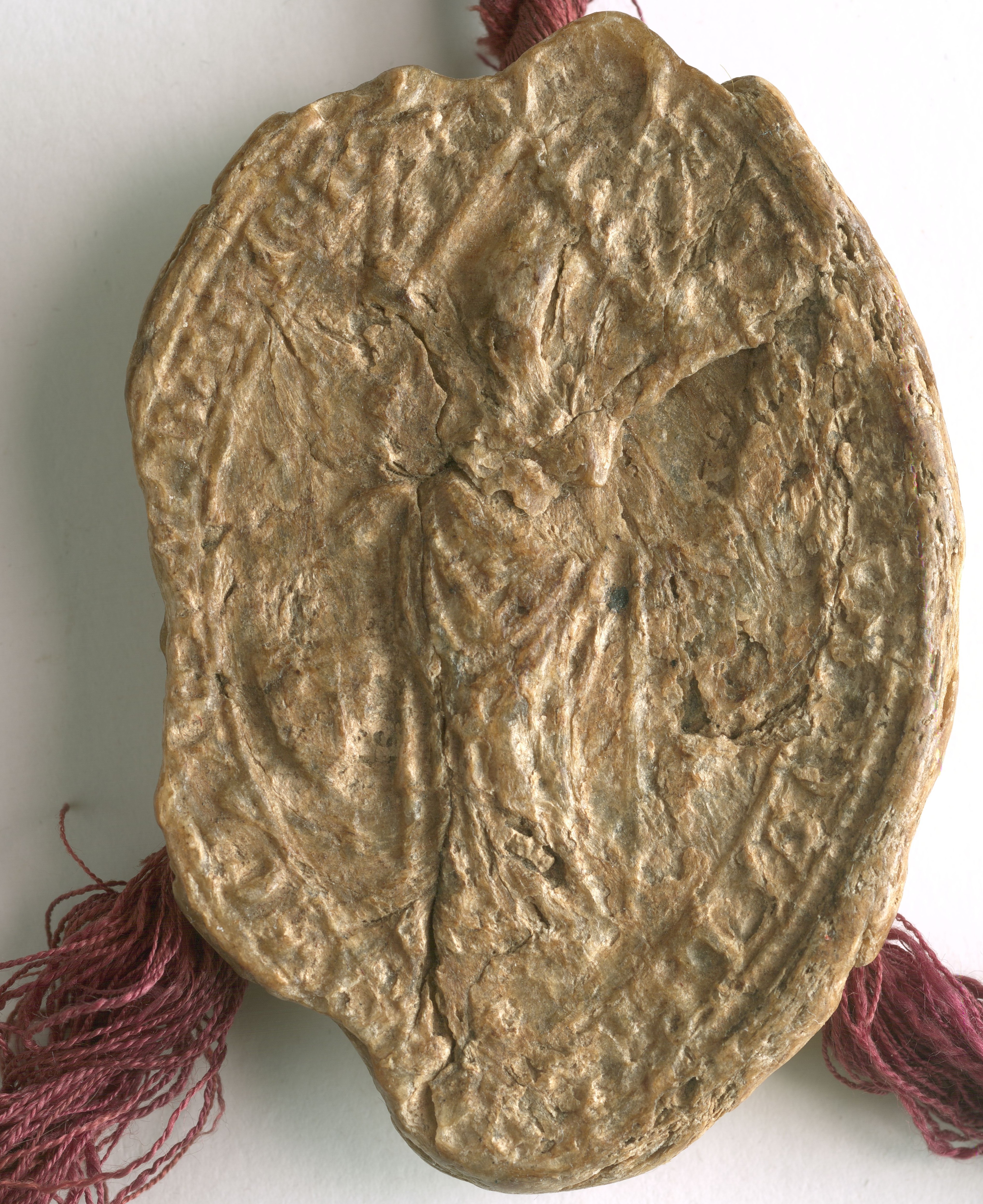 Wojciech Pałuka [h. Topór], biskup poznański, pieczęć piesza. Odcisk z Archiwum Głównego Akt Dawnych w Warszawie z 1349 r.