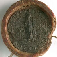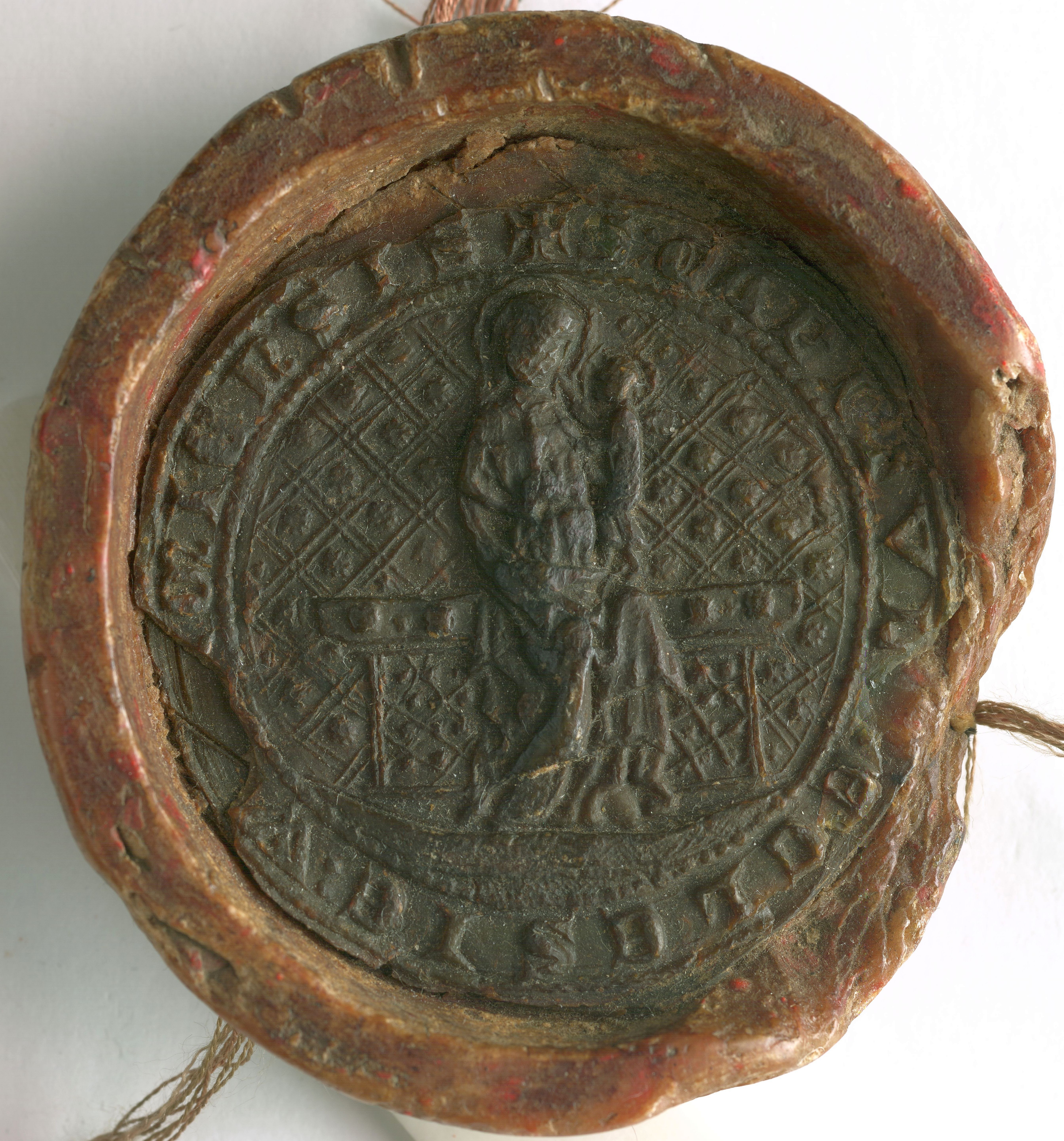 Frombork, kapituła katedralna [warmińska], pieczęć maryjna II. Odcisk z Archiwum Głównego Akt Dawnych w Warszawie z 1454 r. (2)
