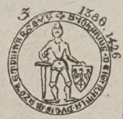 - Janusz I Stary, książę Mazowsza i pan Warszawy, pieczęć piesza II. Opis Joachima Lelewela z [1827] 1856 r.